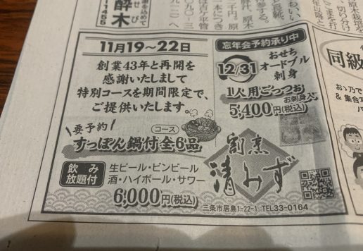 《 清みず創業43周年 & 営業再開記念 》 清みずは本年で創業43年を迎えます! また営業再開にあたって、皆様からの温かいご支援、心より感謝申し上げます。 特別コースを11月19日(水)〜22日(土)までの...